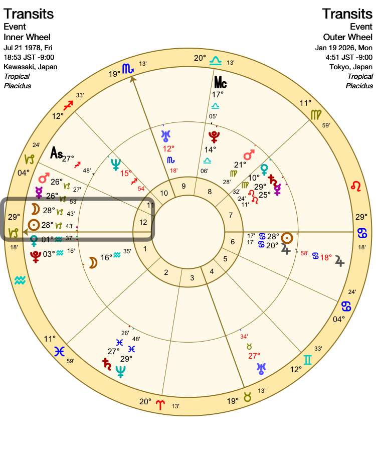 今回の新月のホロスコープを外側にして