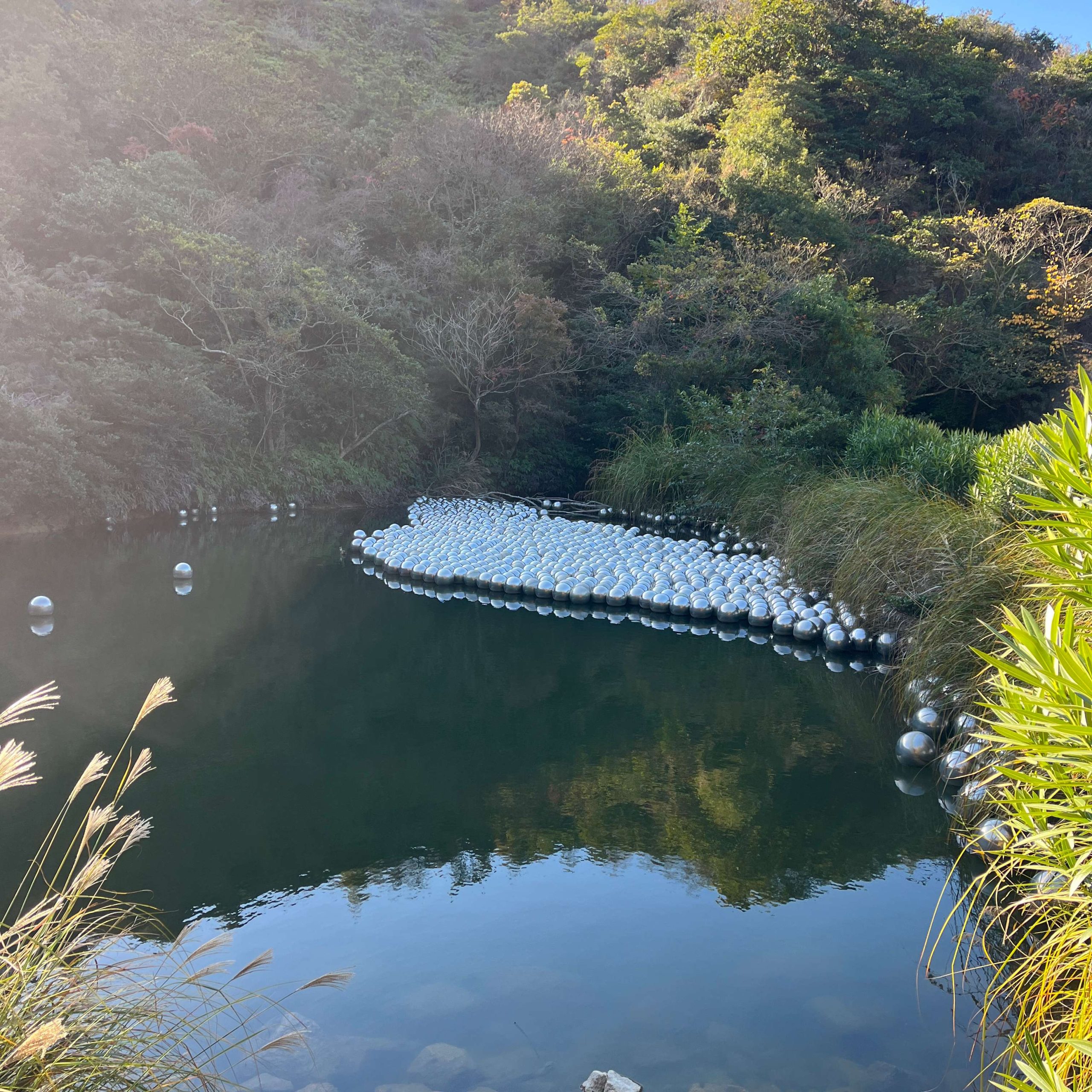 ミラーボールが池に浮いていたり