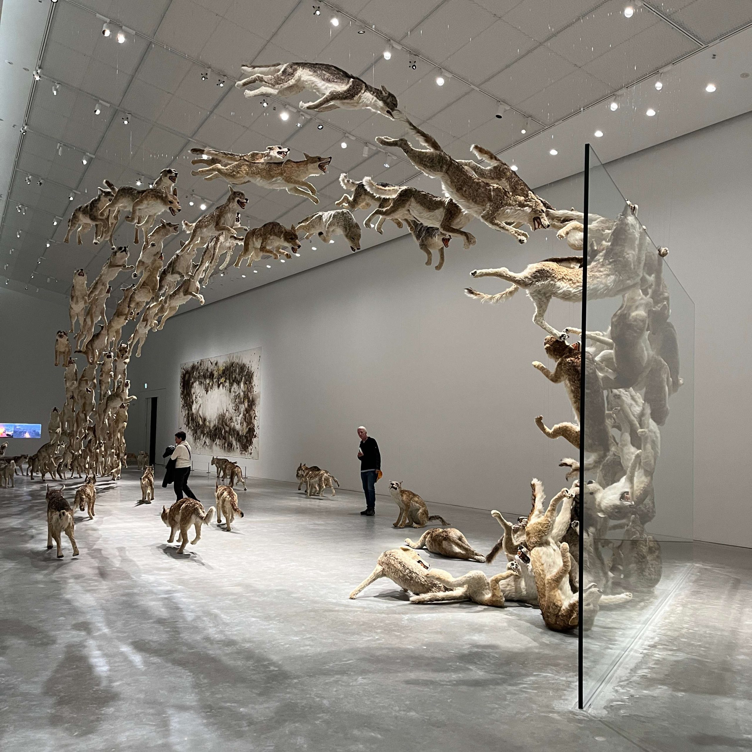 ガラスの壁にぶつかっている作品は