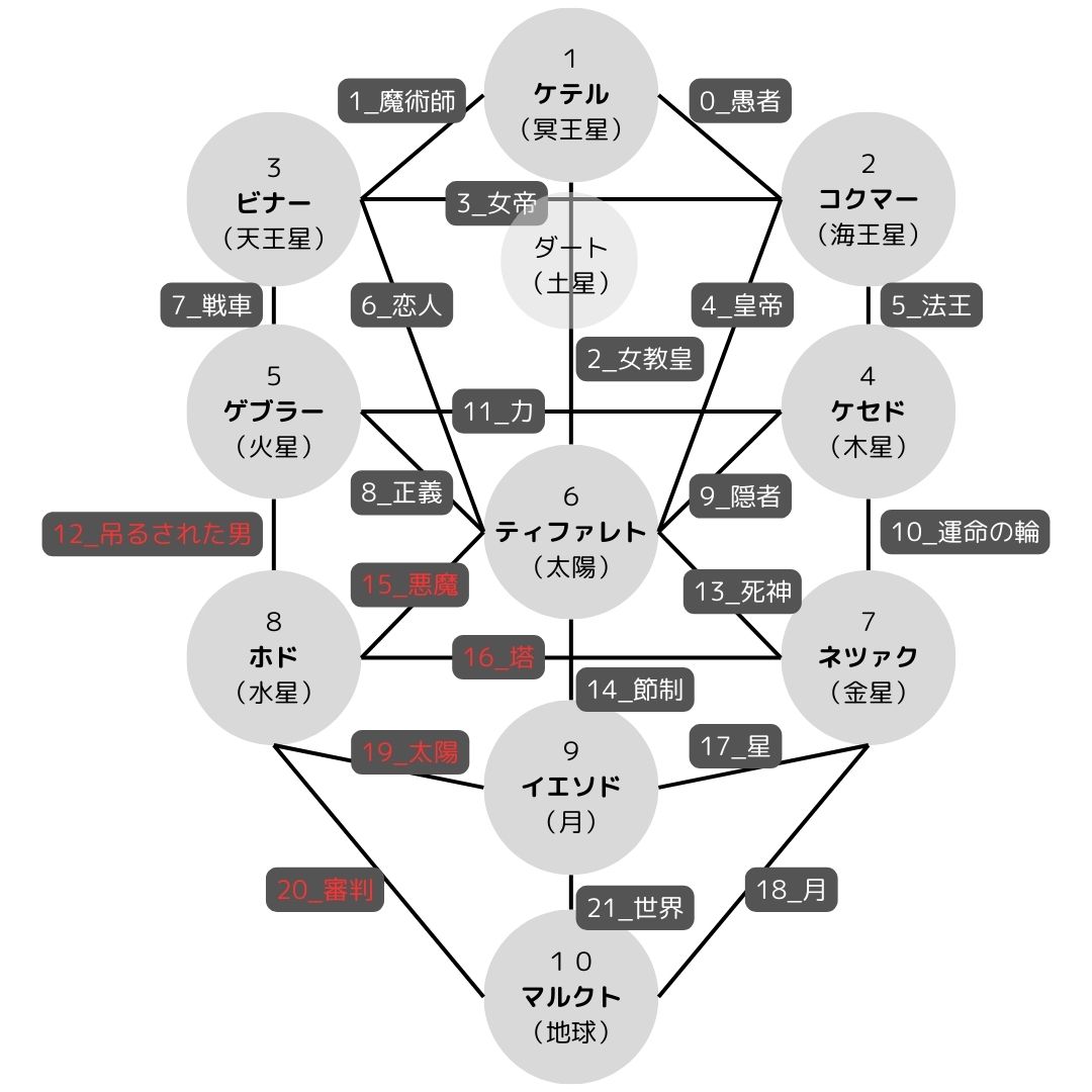 タロットカード大アルカナと対応しています。